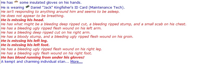 A doctor, new to their role I was later informed by ghosts, took me into their care. After about twenty more defibs I started to suspect something was wrong. I asked deadchat if this was normal. No. It was not. New to this whole revival process I went and got a snicky snack figuring it would take awhile. Returned to see I was still getting defibbed endlessly. About another dozen defibs later my doctor finally gives up and drags me to the lobby to display their failure. I have successfully been defibbed at least forty times only to die again. It's over.... until?